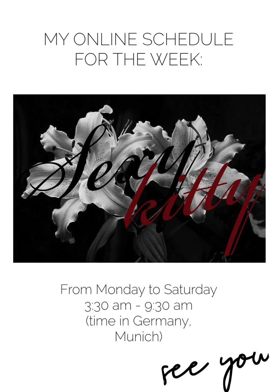 Analleketøy, Ahegao, Blotting, Brystvorteleker, Hæler, Lær, Puppeknull, Nylon, Upskirt, Doggy style, Sexleketøy, Twerk, Fotfetish, Spanking, Erotisk dans, dildoinpussy+250tk, record+350tk, controltoys10min+400tk, anal+799tk, Kameltå, Handjob, Onaneringsinstruksjon, Yoga, Fingring, Blowjob, Kukkvurdering, Stripping, control10min+400tk, anal+500tk, Deepthroat, Skittensnakk, Dildo eller vibrator, Hardcore, Onani, Orgasme, Cowgirl, Toppløs, Footjob